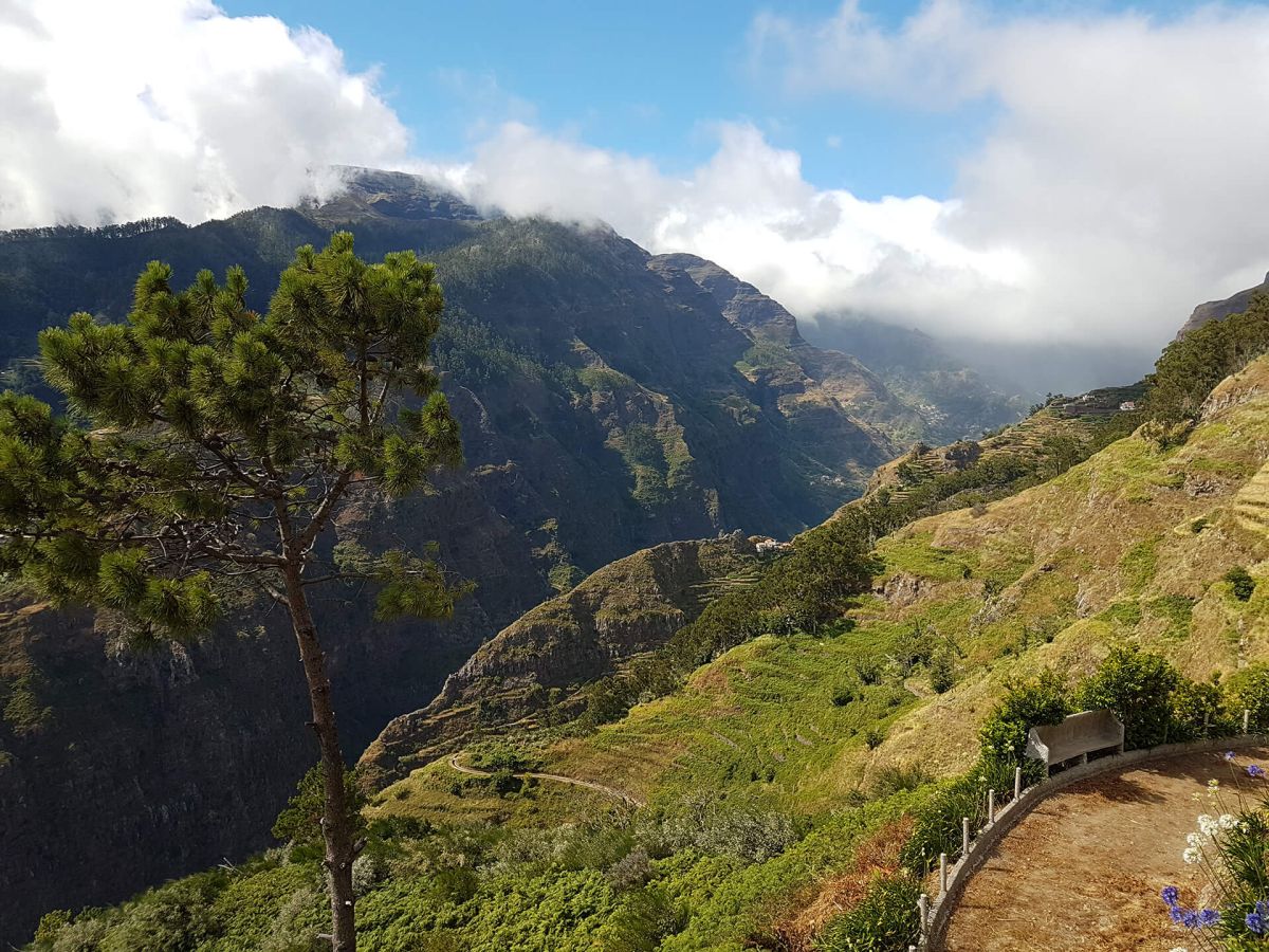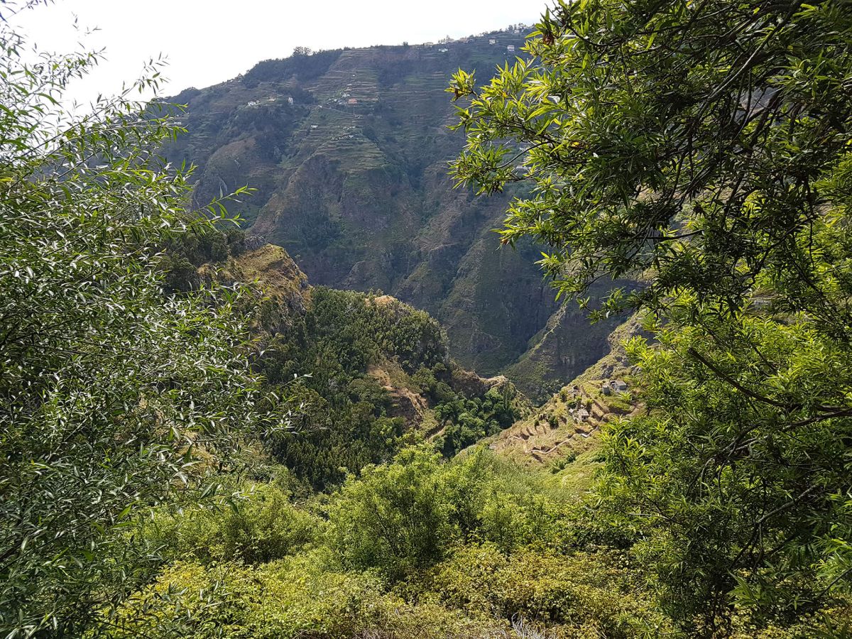 We can also observe the typical Madeiran agricultural terraces with a diversity of products. This organized method of plantation contrasts with the vast Eucalyptus forest, which we also encounter. In the Spring, a beautiful variety of flowers are also present along the Levada.