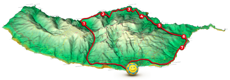 Continuando pela costa Norte chegamos a São Jorge. Esta pequena e encantadora aldeia foi uma das primeiras freguesias do Litoral Norte da Ilha a ser povoada. Aqui paramos para almoçar por cerca de 90 minutos, existem alguns restaurantes locais para escolher. No miradouro da Cabana tem-se uma vista fantástica sobre o Arco de São Jorge e o Oceano Atlântico. Em dias claros é possível até avistar a Ilha do Porto Santo.